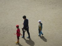 6年生が開脚前転(?)の練習をしていました。くるっと回って、すぐに立てる子もいれ...