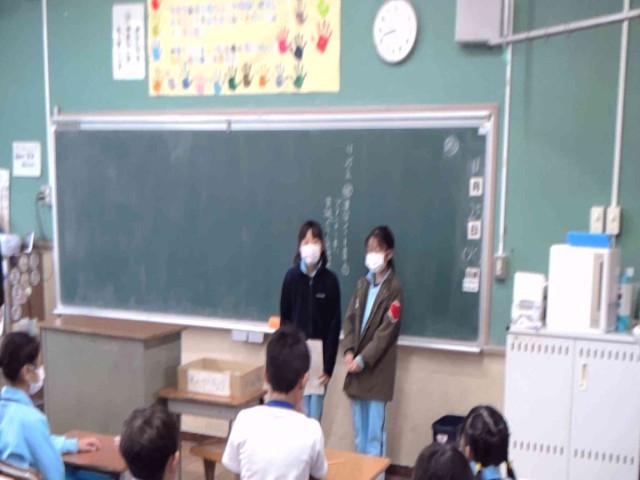 今朝、各クラスで赤い羽根共同募金の呼びかけが行われました。