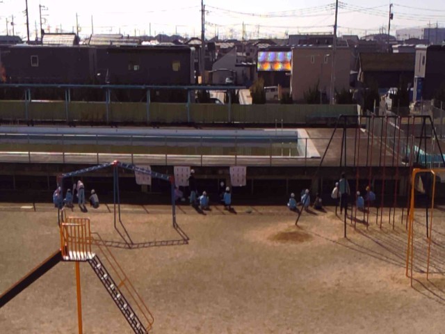 勝手に体育館の壁に光を当てて遊んでいるときでした!