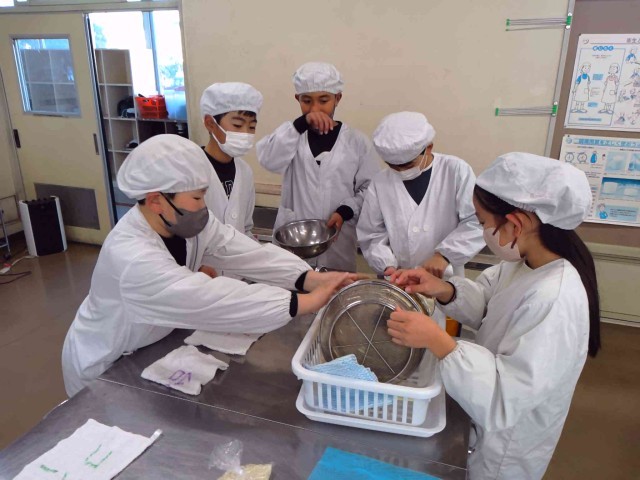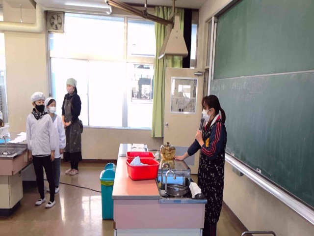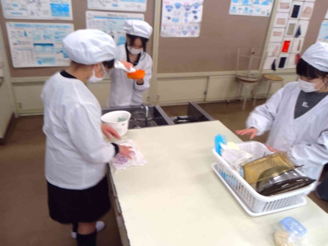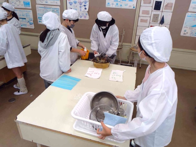 調理実習で炊飯をしていました。