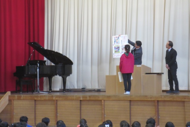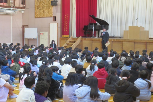 ちょっと寒い体育館で2学期の終業式が行われました。