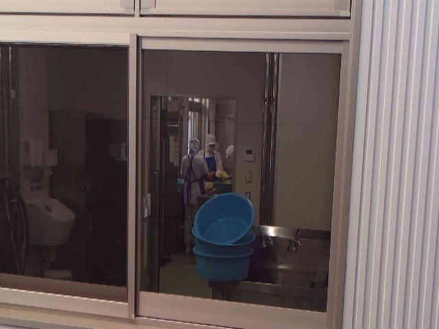 (新しい給食室となり、衛生面が厳しく、あまり近づけないのでこんな写真です)
