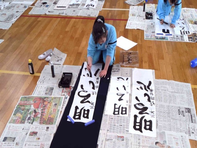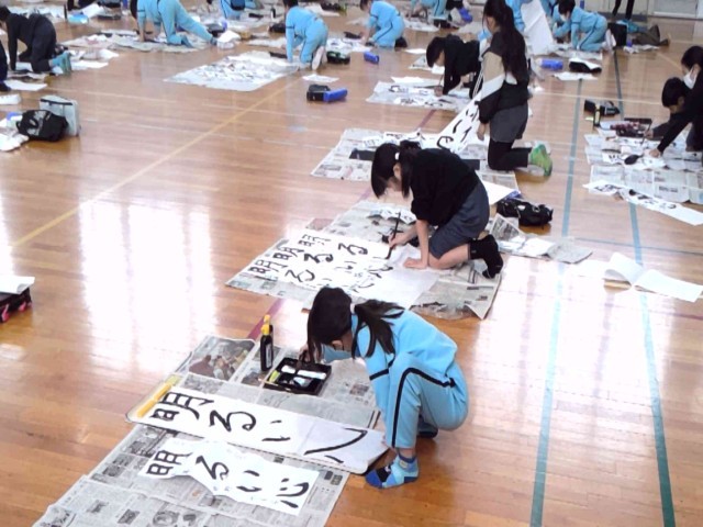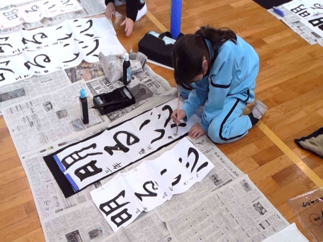3年生が初めての条幅書き初めに挑戦です!