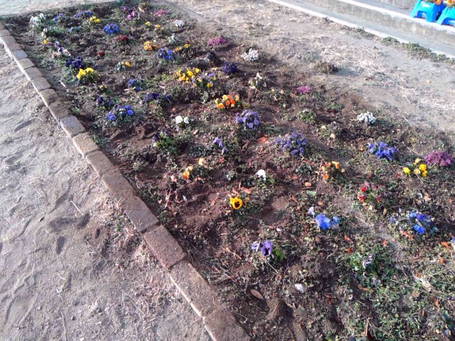 前庭花壇の雑草取りをしてきれいな花壇に変身させてくれました。