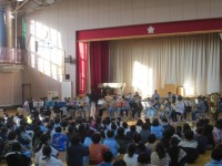 金管バンドが体育館で最終調整をしていました。