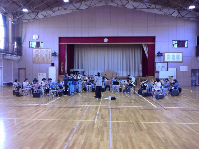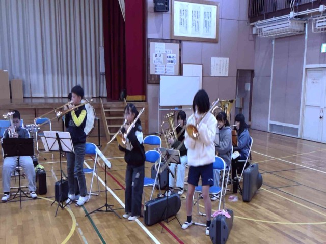 金管バンドが体育館で最終調整をしていました。