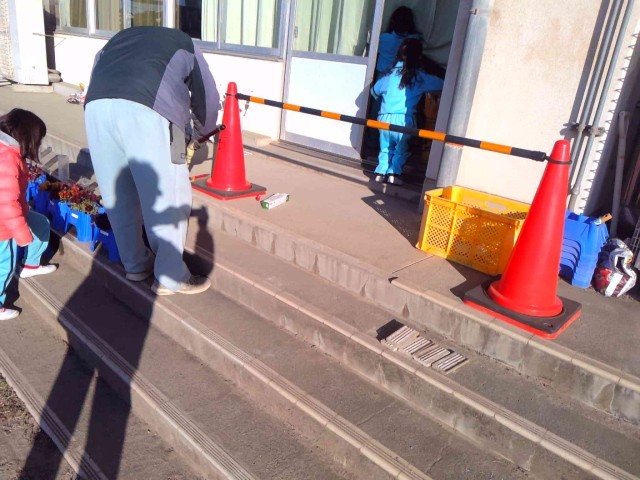 今朝、校務員さんがすぐに緊急修理をしてくれています。