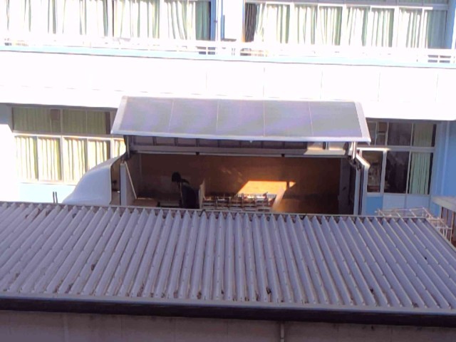 中庭に大型貨物車が来ていました。