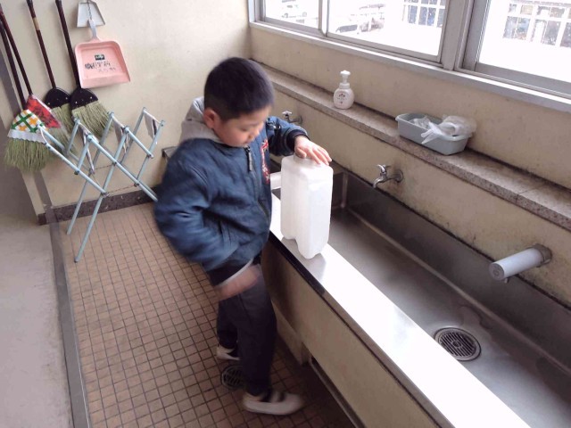 水を入れている子がいました。