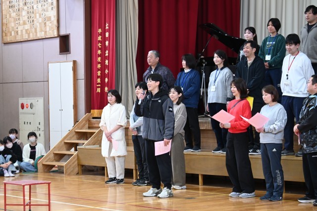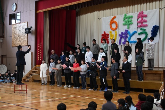 全校での校歌合唱で6年生を送る会が終了となりました。