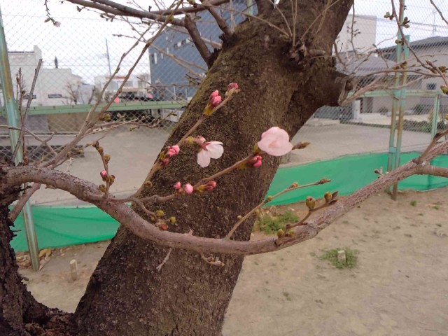 校庭の桜が何個か咲いています!