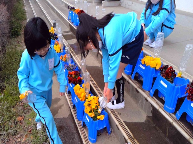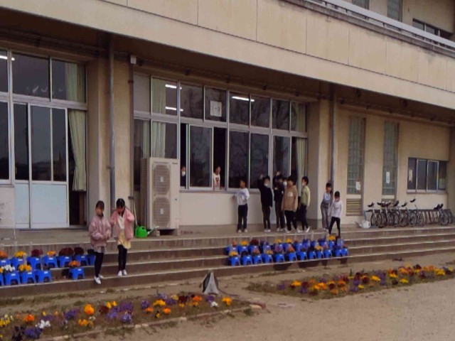 その向こうでは「おはようございます!」と元気に手を振ってくれています!