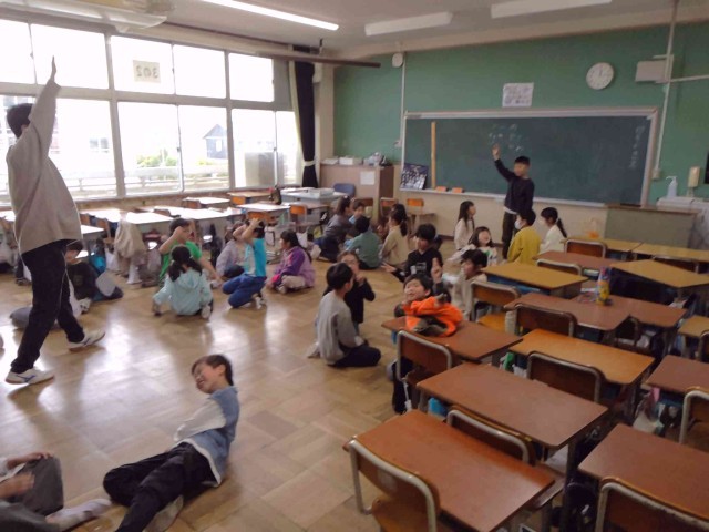 歓声が聞こえます! 公開日 2026/04/10 更新日 2026/04/10 3年生 前校舎二階に歓声が響いています。行ってみると、じゃんけん大会(?)をしていました。この時期、新しいクラスメイトとの距離を縮めるための学級レクが大切です。