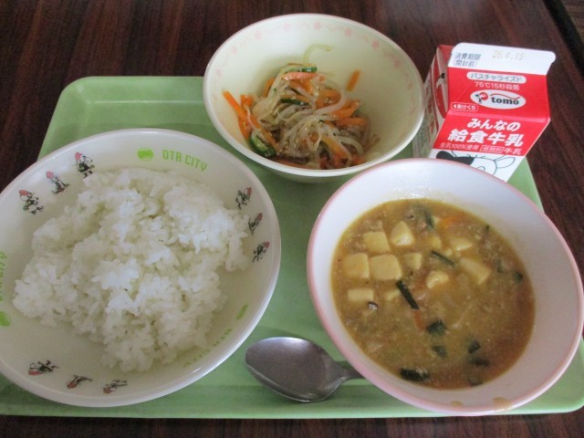 おいしい給食 公開日 2026/04/10 更新日 2026/04/10 給食 今日のメニューはマーボー豆腐もやしナムル白飯そして牛乳です。ナムルもマーボー豆腐も白飯によく合います!今日もおいしくいただきました。ごちそうさまでした。