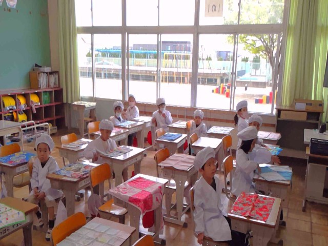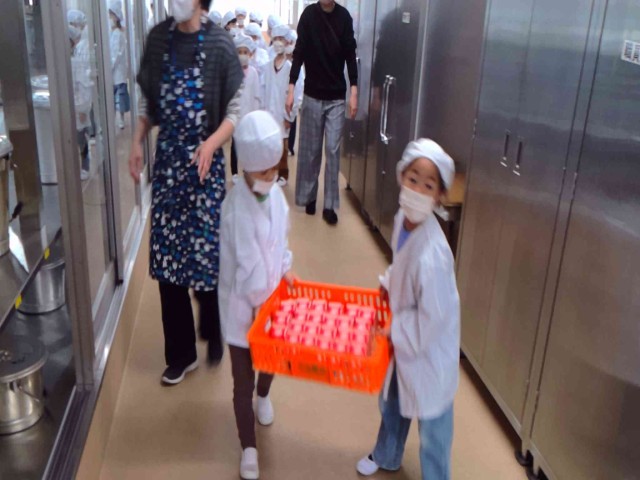 教室で配膳し、いよいよ実食です!