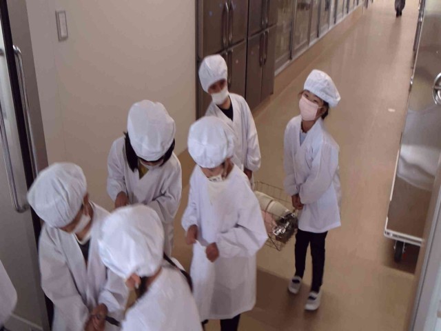 給食室で受け取った
