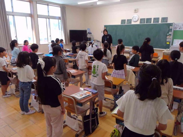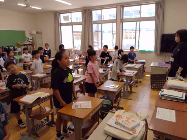 自己紹介の後、みんなで元気よく校歌を歌っていました。