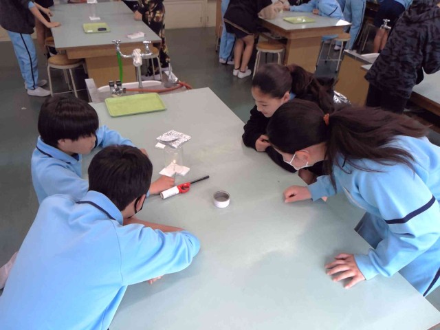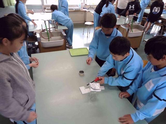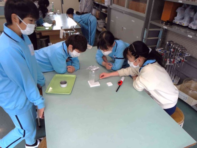 ろうそくの燃え方と集気瓶の中の空気の流れを