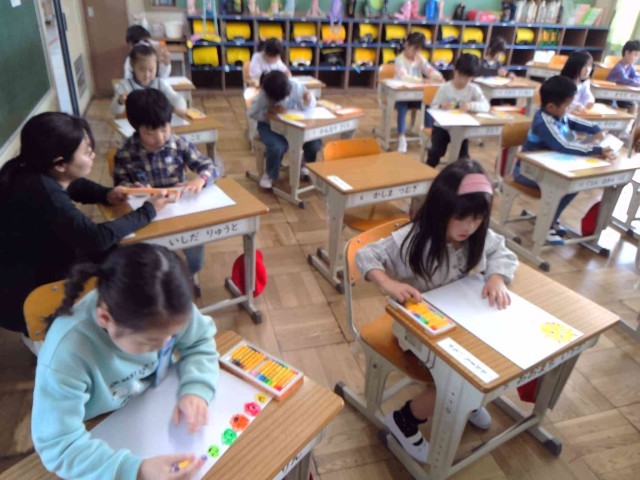 1年生が黙々と絵を描いています!