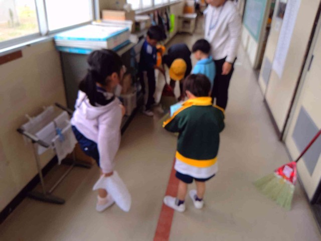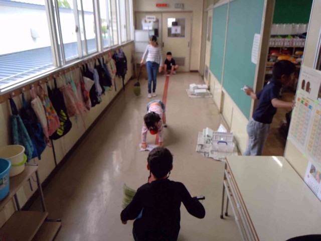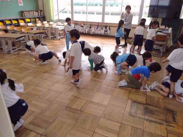1年生も机運びや雑巾がけをがんばっていました!