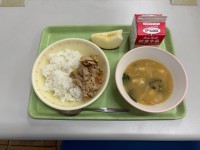 今日の献立は豚丼豆腐とネギのみそ汁りんごそして牛乳です。今日も、大泉のキャベツや...