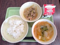 今日の献立は麻婆豆腐キャベツと小魚のサラダ白飯そして、牛乳です。麻婆豆腐と白飯は...