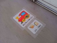 廊下には給食列車のフロアサインが貼られ、いよいよ今日から1年生の給食が始まります...