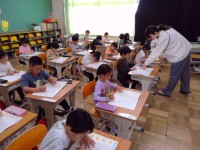 1年生の教室では算数の学びが展開されていました。子どもたちがそのかず分の○を塗り...