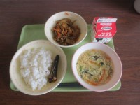 今日の献立はいわしのみぞれに煮上州きんぴらえのきだけのスープ白飯そして牛乳です。...
