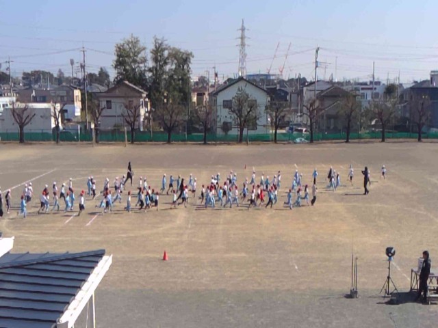 青空の下、運動会に向けて全体練習が行われなした。今日は、縦割り班順の整列、校歌の...