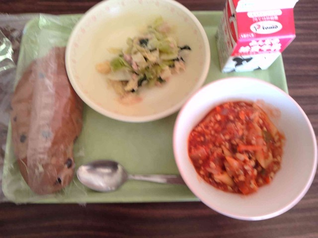 今日のメニューは鮭フライ上州きんぴらキャベツのみそ汁白飯そして牛乳です。サクッと...