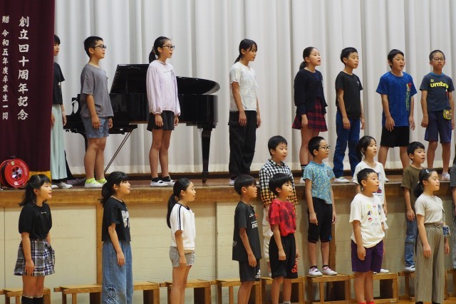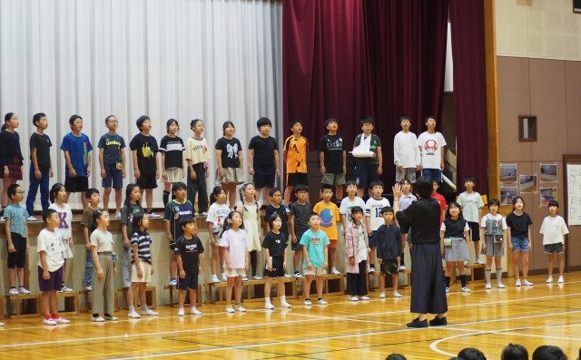 今朝は今週行われる小学校音楽発表会のリハーサルとして、体育館で4年生が合唱を披露しました。