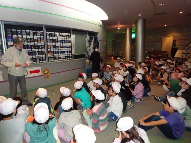 プラネタリウムは初体験の子も多く、倒れる椅子や暗くなっていく室内の雰囲気に興奮気味でしたが、始まるとすぐに集中し、大いに楽しむことができました。