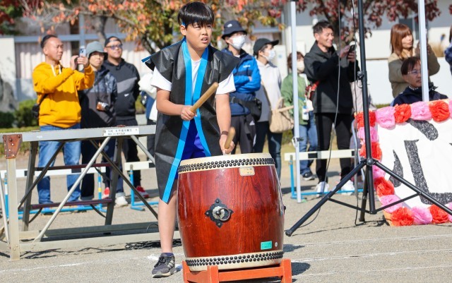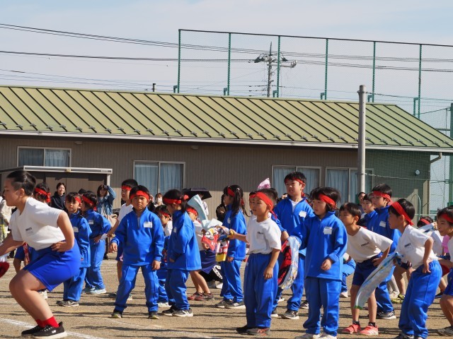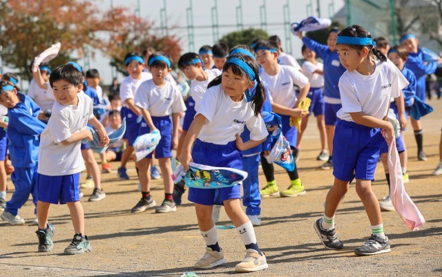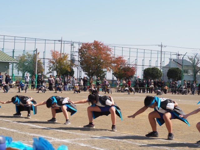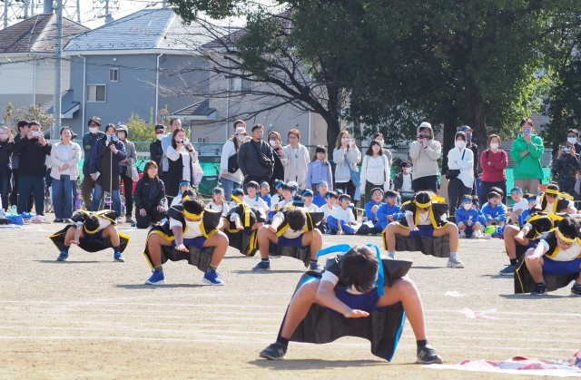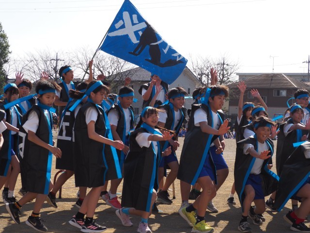 5・6年生が大きな声でかけ声をかけると、それに応じて観客席の1~4年生もいっしょに声を出していました。