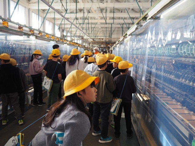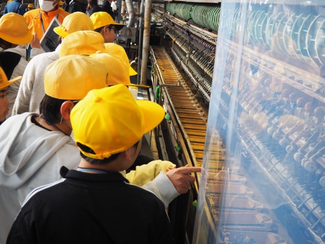上毛カルタにも読まれた、群馬の誇る世界遺産の一つを見学し、明治時代に作られた建物や製糸のための機械を見て子どもたちはびっくりとしていました。