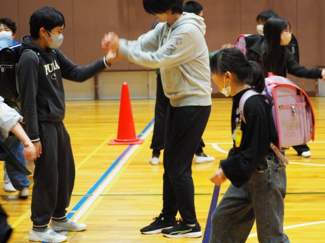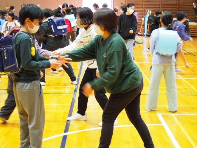 とにかく大きな声を出すこと、基本は逃げることを常に意識することが大切だということで、たくさんの方法を教えていただき、実際に駒っこたちも先生や保護者のみなさんといっしょに楽しみながら体験しました。