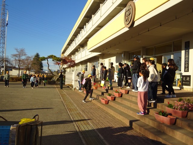 霜が真っ白におりた冷え込む朝でしたが、いつも登下校を見守ってくださる見守りたいの方々や、笑顔で迎えてくれるPTA本部役員の方々・学級代表委員や4年生のボランティアの子どもたちのおかげで、駒っこたちは寒さに負けず元気に挨拶をすることができました。