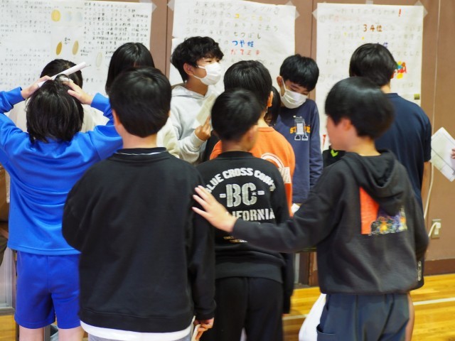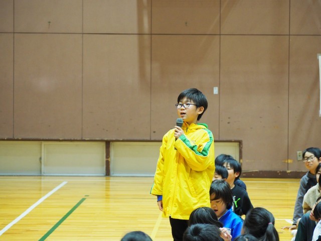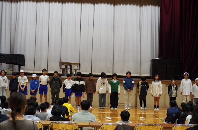 1年間米作りをしてきた5年生が、お手伝いをしてくれた人たちやたくさん実った稲などへの感謝の気持ちを表現する会を行いました。