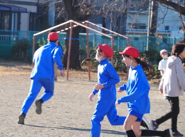 1年生から6年生まで、みんな楽しそうに鬼ごっこをしていました。