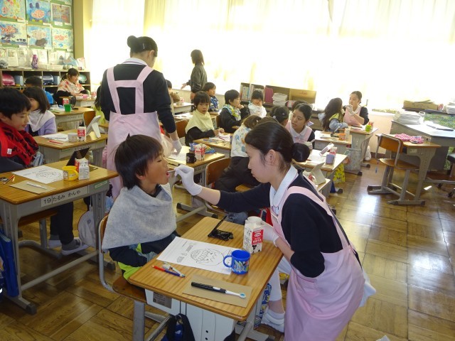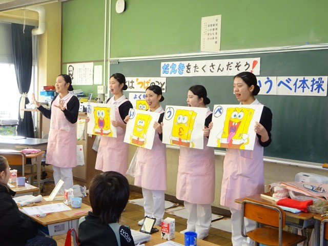 本日の3時間目、太田医療技術専門学校の学生さん10名を講師にお招きし、2年生は歯の上手な磨き方について学習しました。