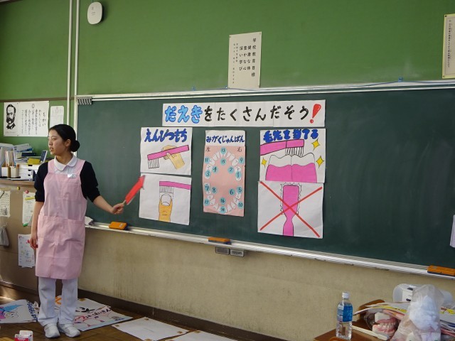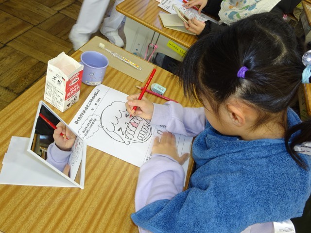 質問にもはきはきと元気に答え、1本1本丁寧に歯磨きを頑張っていた立派な2年生でした。