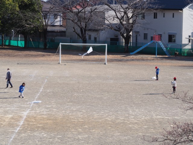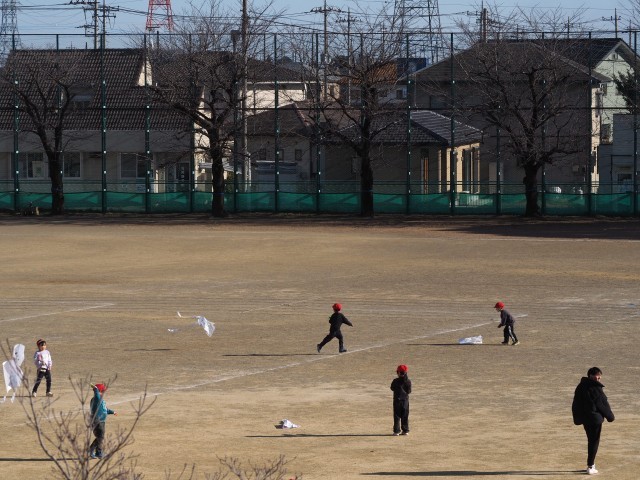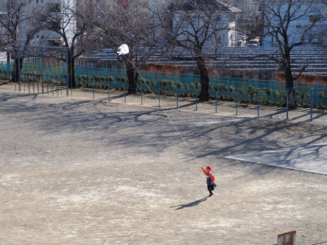 1年生が凧あげをしています。