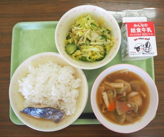 給食が始まった頃に出ていたすいとん、焼き魚、漬け物を意識した香味漬けです。