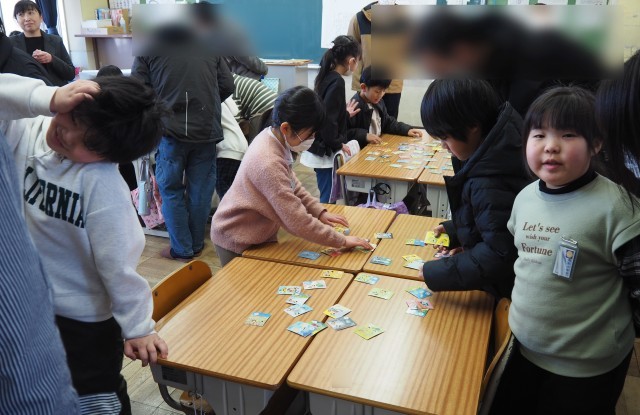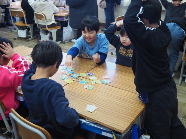 来ていただいたお家の人と一緒にカルタをしたり、コマを回したりした学年もありました。