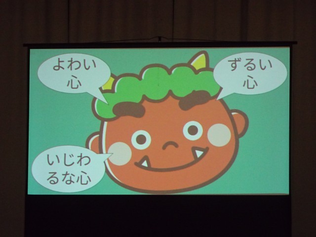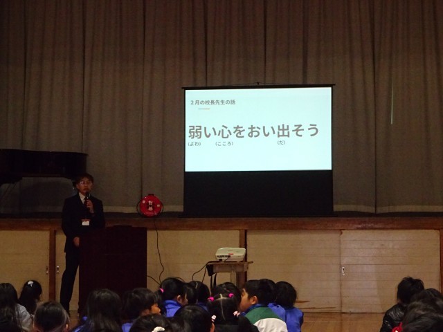 節分の今朝の全校朝会では「弱い心をおい出そう」をテーマに、校長先生より講話をいただきました。