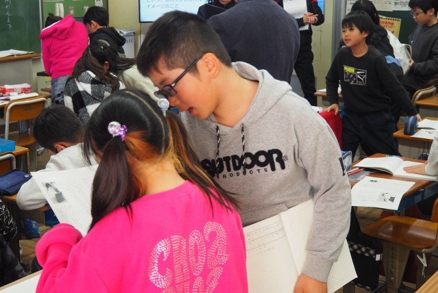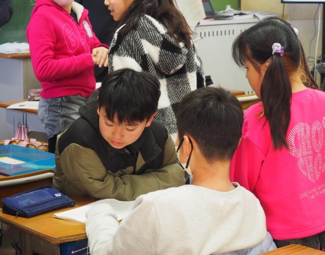 自分の考えをノートに書いた後には、友達と意見交流をしました。