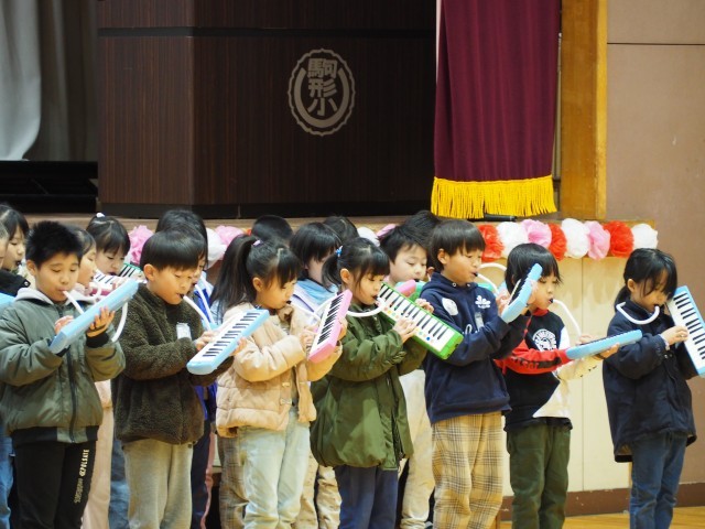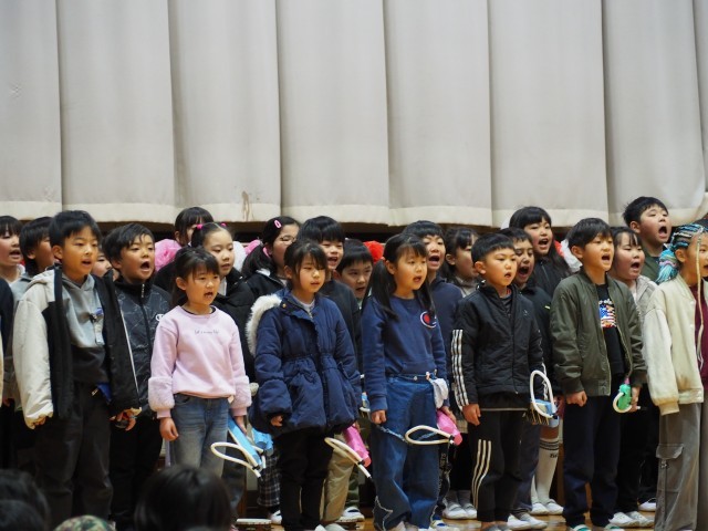 2年生は上手になったピアニカで「山のポルカ」を演奏し、「ビリーブ」で美しい歌声を体育館中に響かせました。