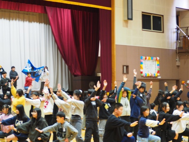 楽しそうに踊る6年生達。周りで見ている駒っこたちも全員楽しそう。