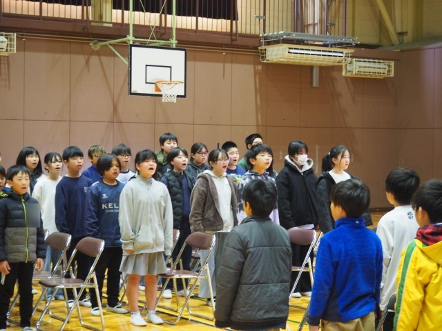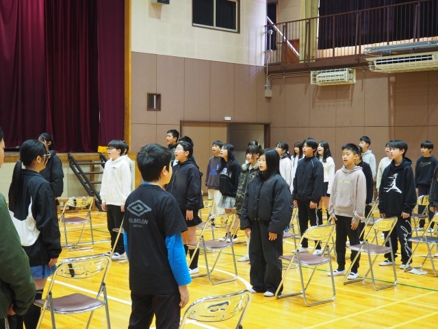明日に向けて5・6年生が真剣な表情で練習に取り組んでいました。