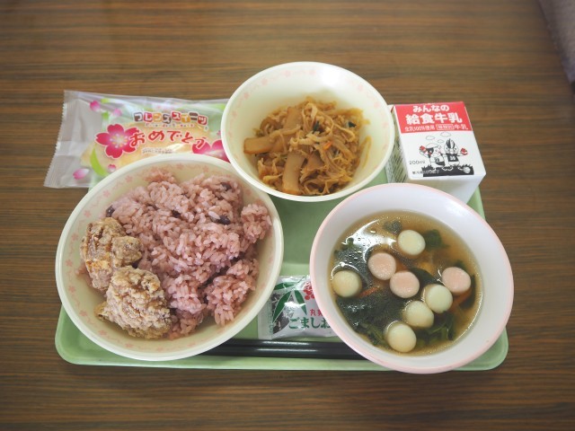 本日は明日の卒業式に向けてのお祝い献立です。